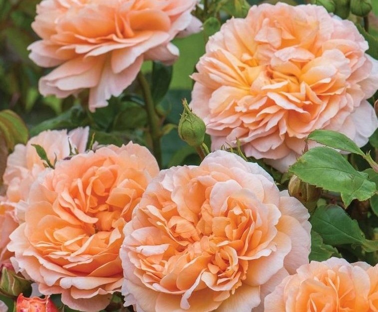 The Lady Gardener (David Austin 2013) Описание сорта: Большие густомахровые цветки диаметром около 10 см прекрасного ярко-абрикосового цвета более светлые к краям. Множество лепестков свободно собраны вокруг цветного глазка в густомахровую розетку характерной крестообразной (квадрированной) формы. Великолепная садовая роза с обильным повторным цветением. Очень здоровая и устойчивая к дождю. Имеет особенный приятный сильный аромат чайных роз с нотками кедра и ванили. В зависимости от обрезки куст достигает 1-1,25 м в высоту и 1,25 м в диаметре. Почему именно Английские розы: Английские розы — группа сортов роз созданных в последней четверти ХХ века английским селекционером Дэвидом Остином. Большая часть сортов относится к классу Шрабы. Английские розы отличаются от остальных современных сортов формой цветка и строением куста. Они сочетают в себе преимущества старинных сортов роз (чашевидную форму цветков, гармоничную форму куста, разнообразие ароматов цветков) с устойчивостью к болезням, разнообразием оттенков и хорошо выраженным повторным или непрерывным цветением присущим современным сортам чайно-гибридных роз и роз класса флорибунда. В группе присутствуют сорта с различным типом роста куста. Они могут быть низкие, средние, высокие, плетистые, распростёртые, густые, разреженные. При этом в разных климатических зонах одни и те же сорта могут демонстрировать различные особенности. Многие сорта отличаются теневыносливостью, что обусловлено английским климатом отличающимся малым количеством солнечных дней и использованием теневыносливых сортов в программе разведения.